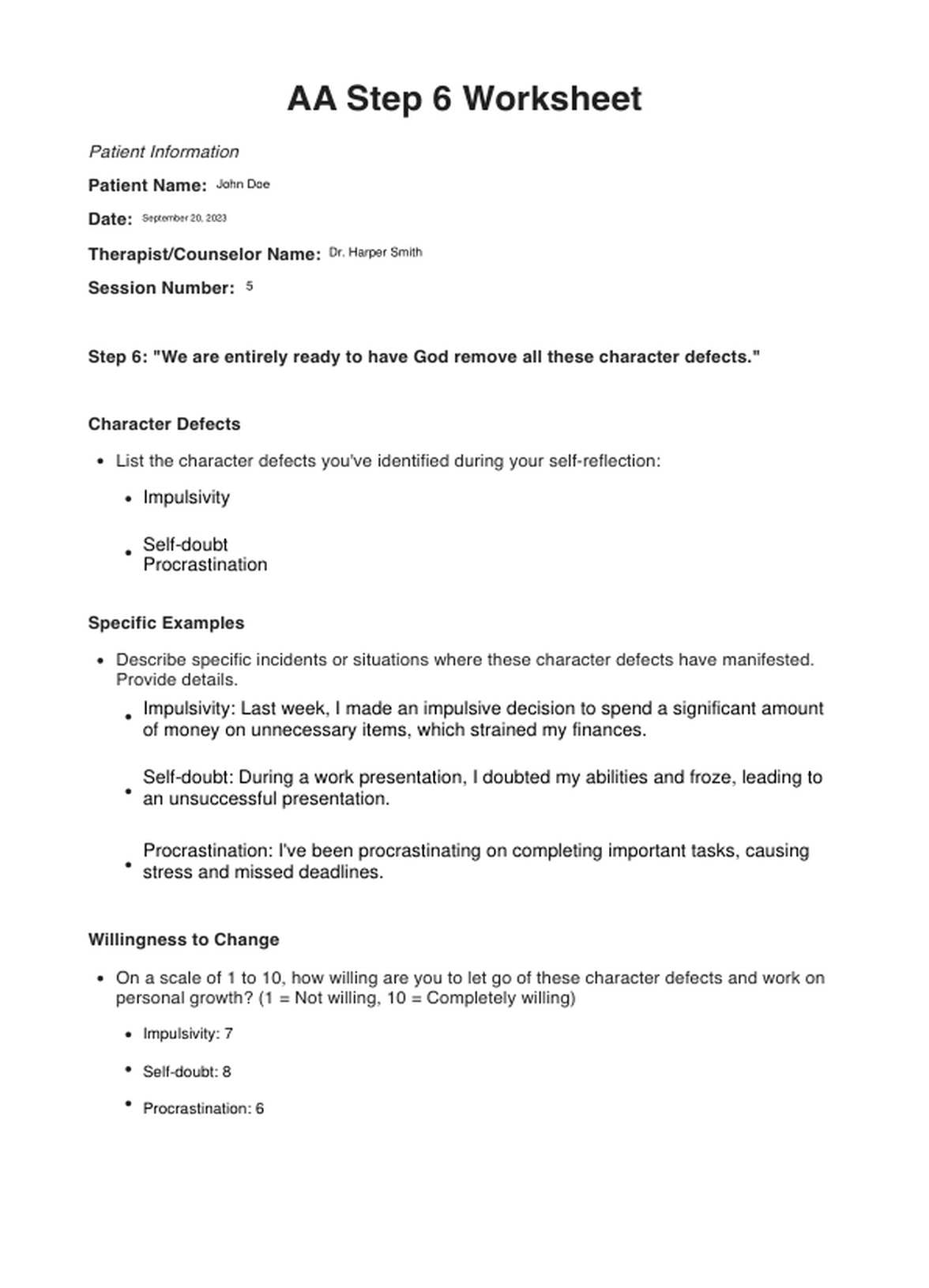 Improve your client's recovery journey with the AA Step 6 Worksheet as a valuable tool for self-reflection and growth in addiction recovery.