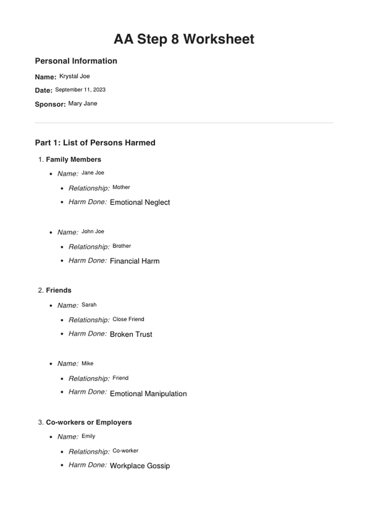 Experience the power of the AA Step 8 Worksheet with Carepatron. Simplify your recovery journey with our secure, user-friendly platform trusted globally.