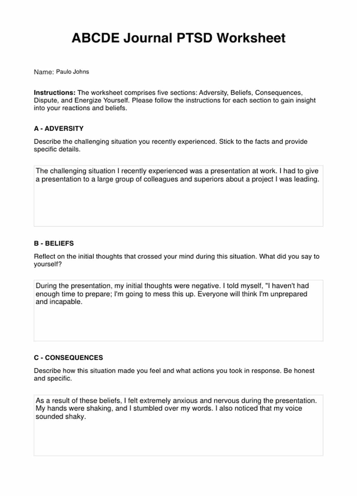 Learn about healing and insight with the ABCDE Journal PTSD Worksheet. Gain control over your reactions and beliefs. Download now for personal growth.