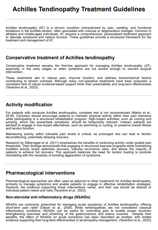 Achilles Tendonitis Treatment Guidelines Template