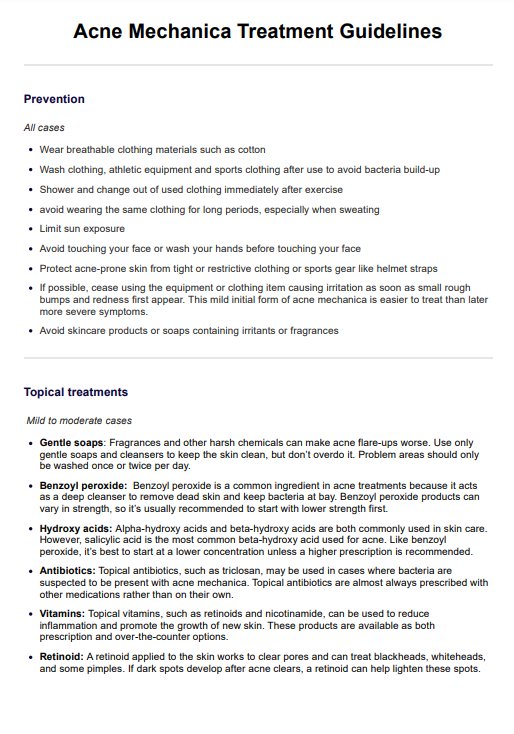 Acne Mechanica Treatment Guidelines Handout Template