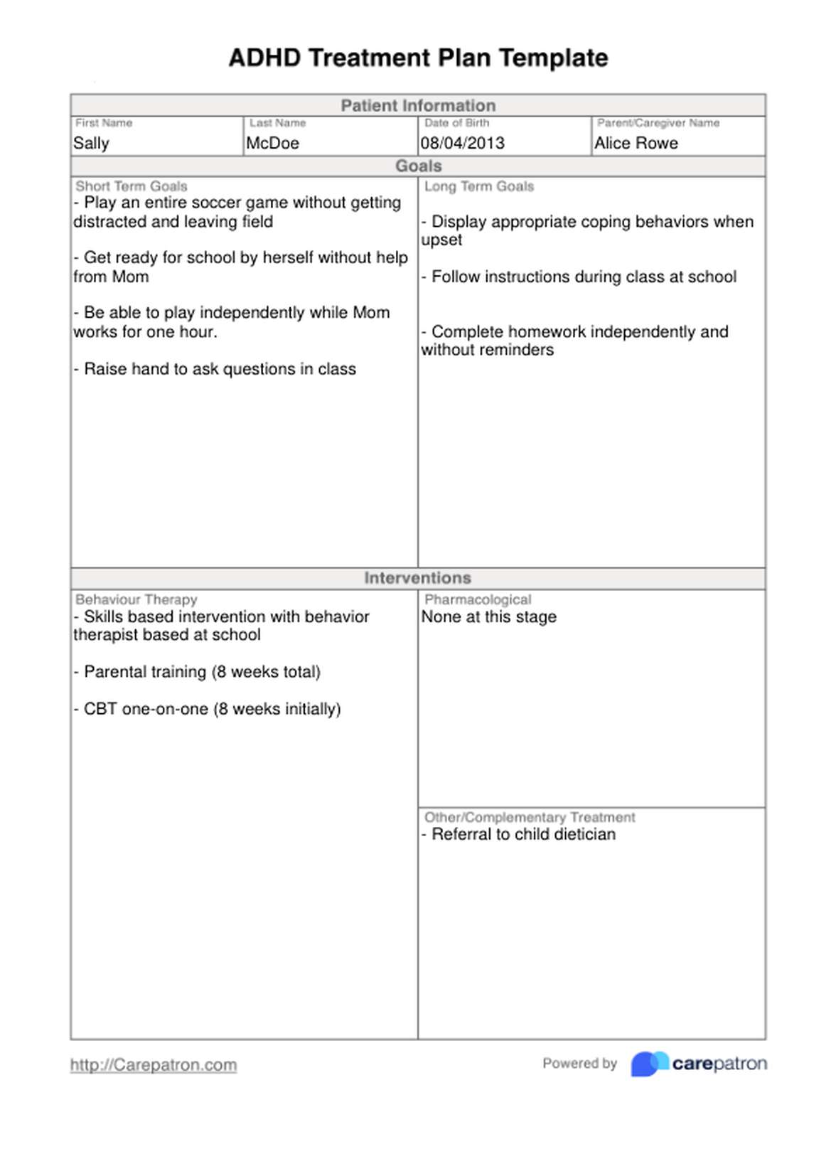 ADHD Treatment Plan Template