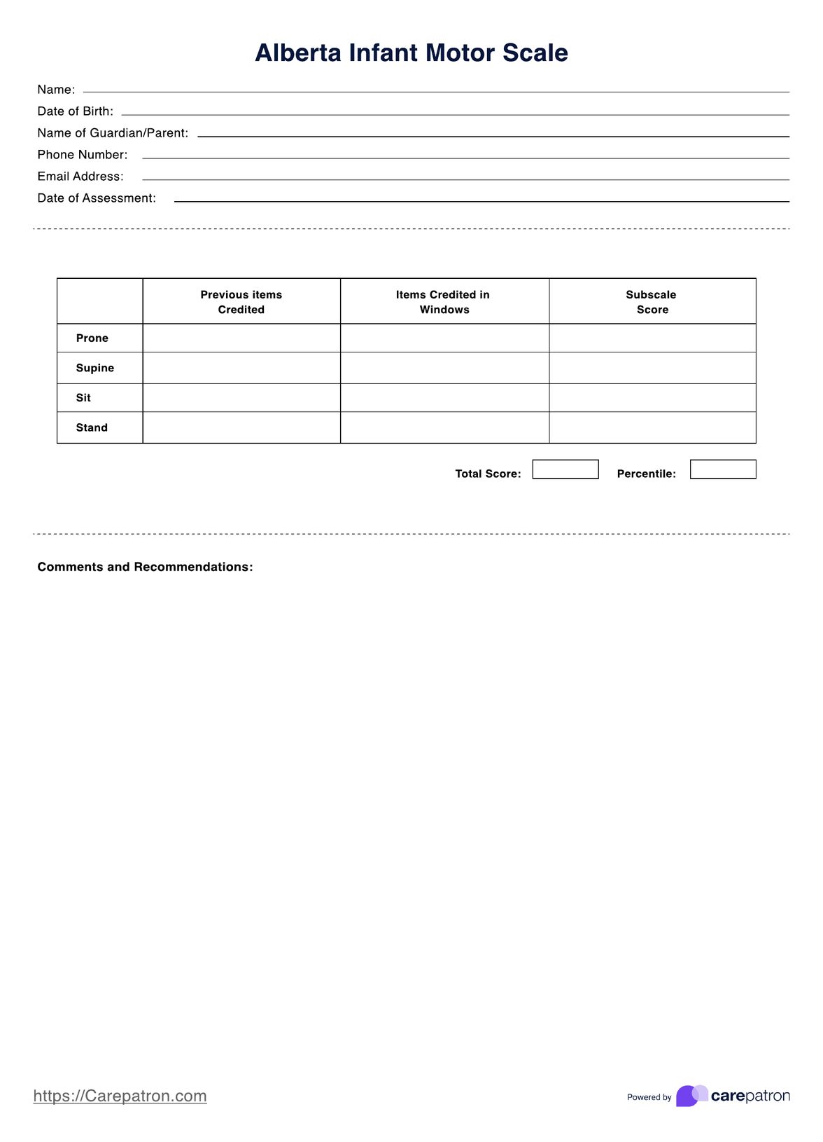 Assess infant motor development with our Alberta Infant Motor Scale template. Streamline evaluations and track progress effectively.