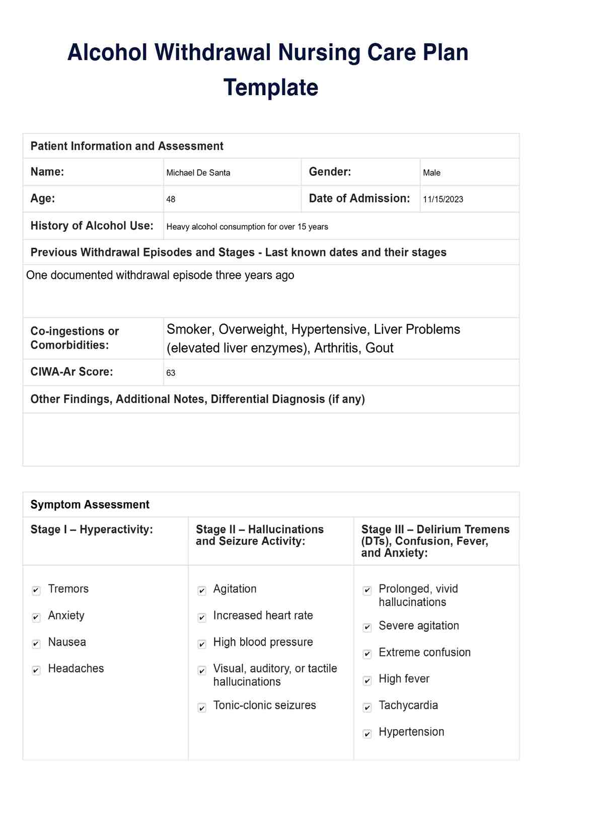 To create a template, gather key patient information, including medical history and withdrawal patterns. Use tools like the CIWA-Ar scale for symptom severity. Collaborate with healthcare experts, tailoring sections for pharmacotherapy, supportive care, and monitoring.