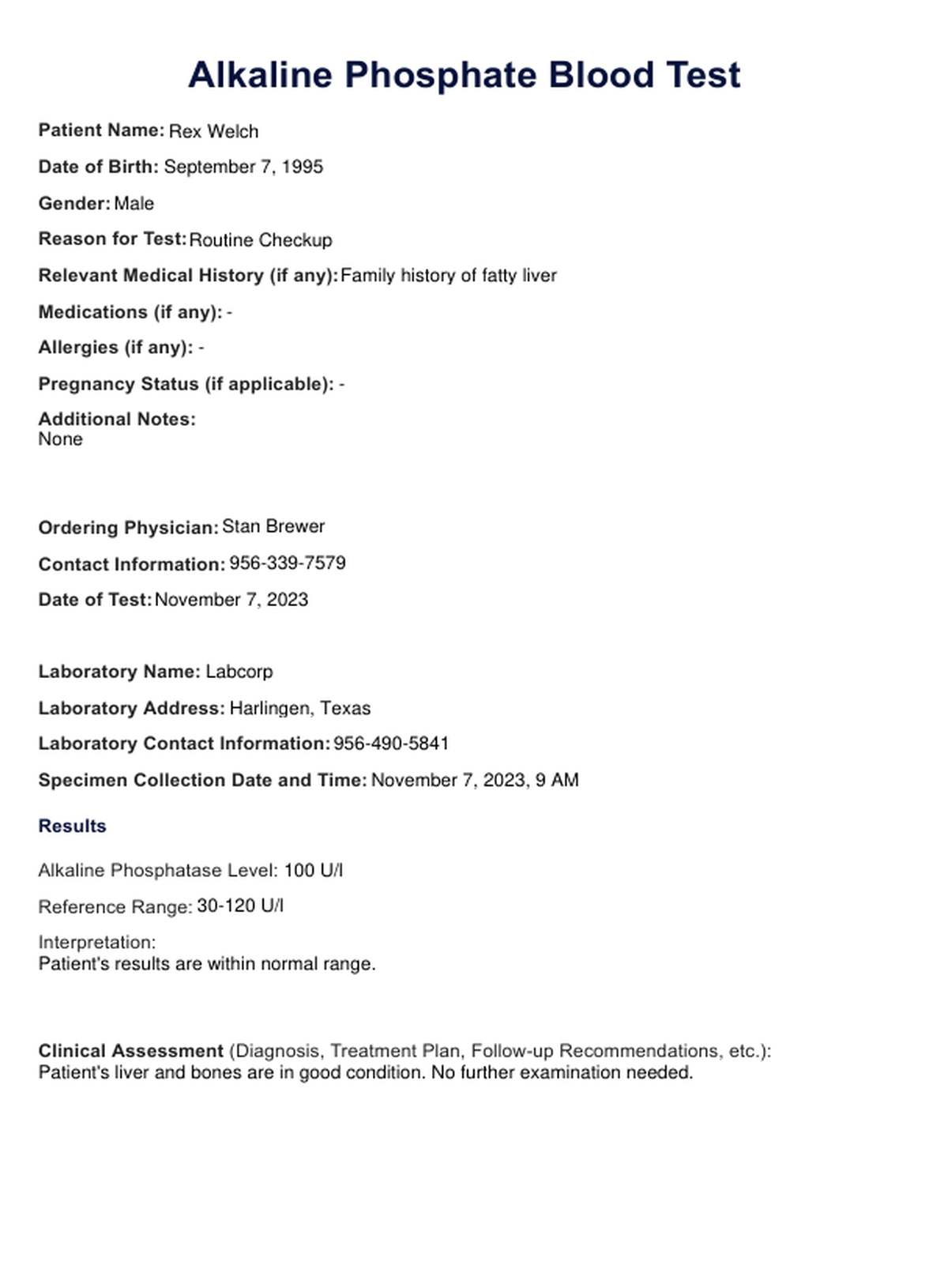 Use your guide to learn about the clinical use of ALK Phos blood tests, interpretable results, etc. For more details and a template, please visit their page.