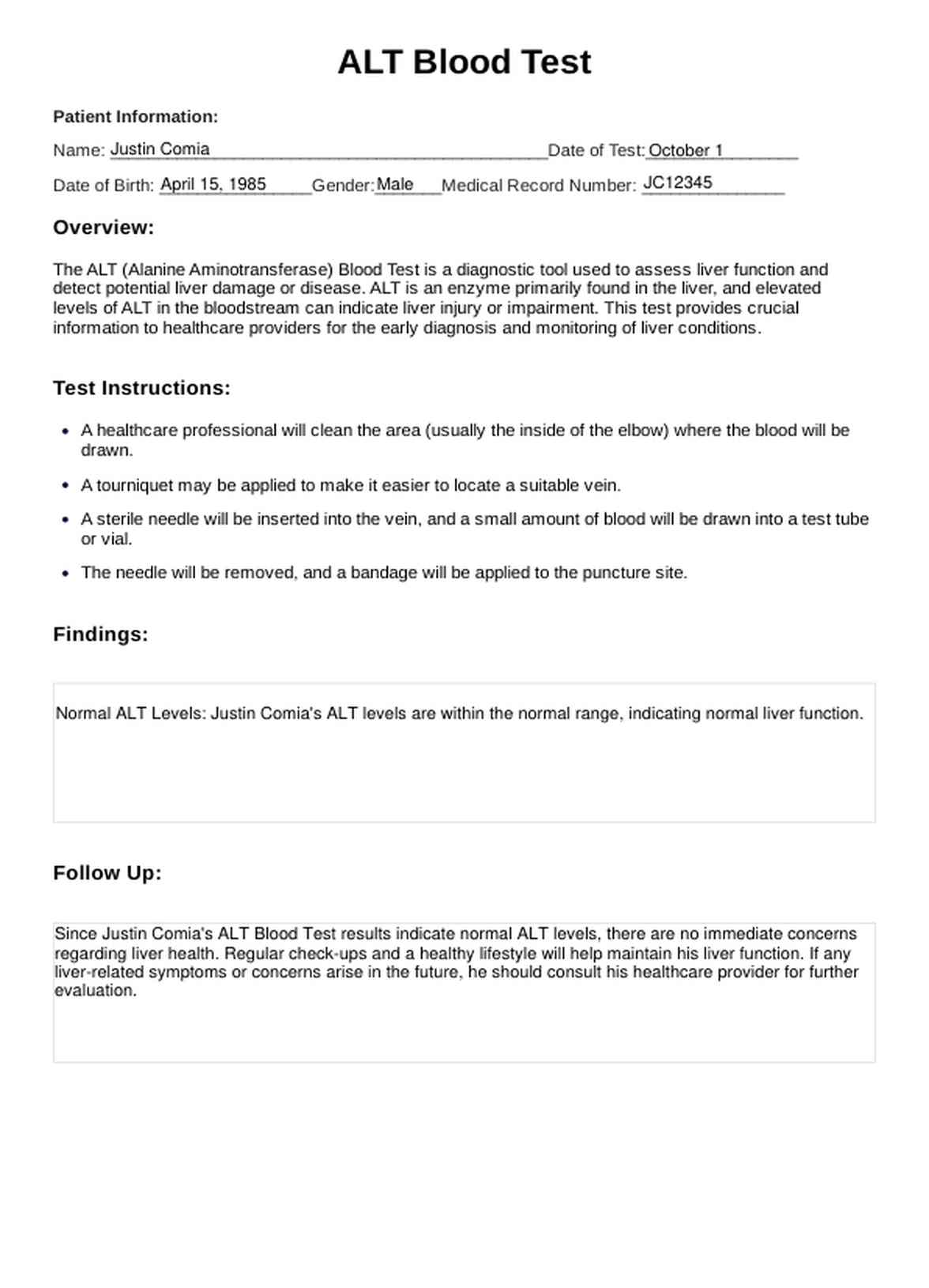 Discover the ALT Blood Test, including what it is, how it works, when to use it, and interpret results. Free ALT Blood Test example available for download.