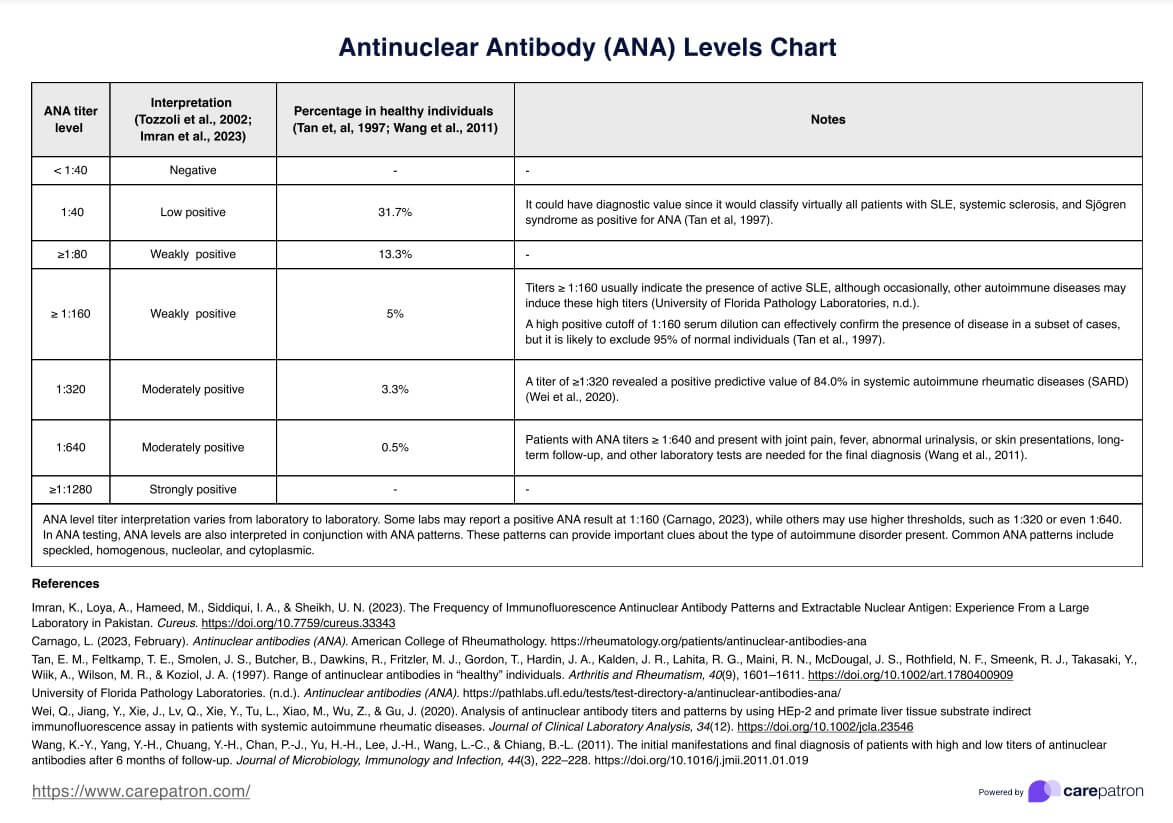 Healthcare professionals use ANA Levels Charts to interpret the results of ANA tests. The charts provide a visual representation of antibody levels and patterns, aiding in identifying specific autoimmune conditions and guiding treatment decisions.