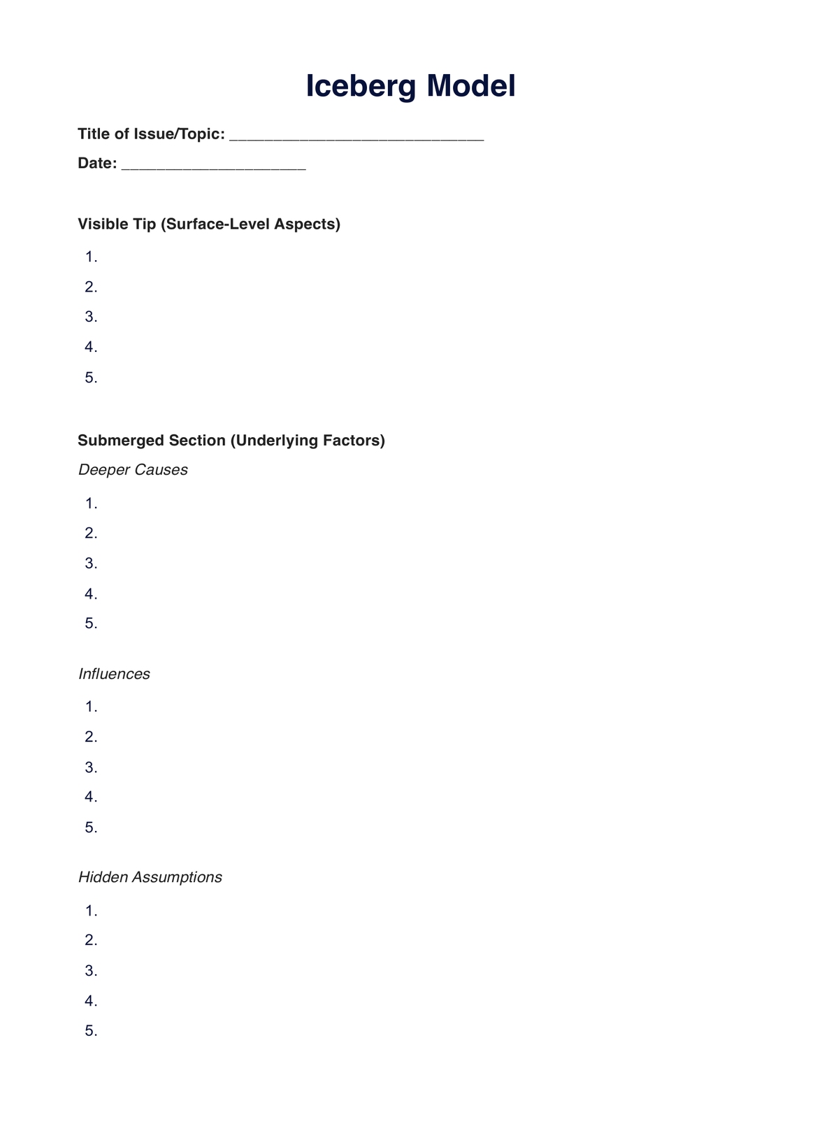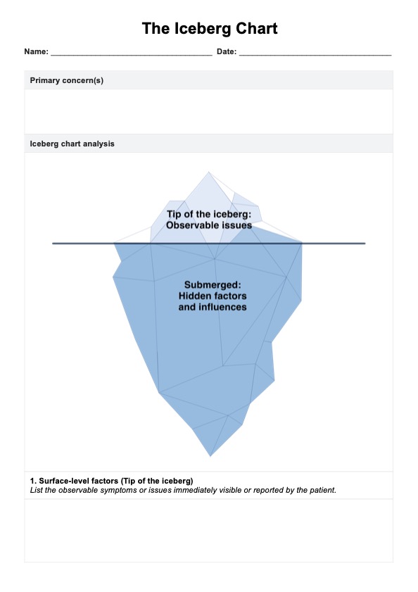 Therapists can use the anger iceberg as a visual or reflective tool to help clients explore the feelings hidden beneath their anger. During sessions, clients can identify what lies “below the surface,” linking anger to unmet needs or painful experiences. This approach promotes emotional awareness and helps clients regulate anger with empathy and understanding rather than suppression or avoidance.