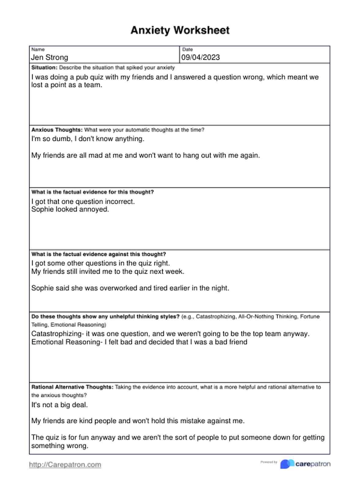 While for some of your clients, it may be necessary for you to offer a helping hand with examples of unhelpful thinking styles or evidence against an anxious thought, this worksheet is designed to be completed by your clients rather than you as their mental health practitioner. As such, it may be a collaborative effort, or your client may wish to complete it entirely independently.
