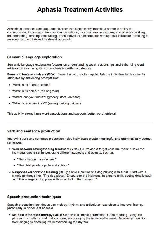 Discover effective aphasia treatment activities in this comprehensive PDF guide to aid in language rehabilitation and communication skills.