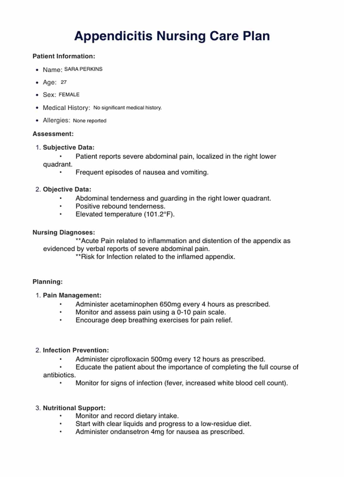 Looking for a nursing care plan template for patients with appendicitis? Here is a pre-made appendicitis nursing care plan template you can use from Carepatron.