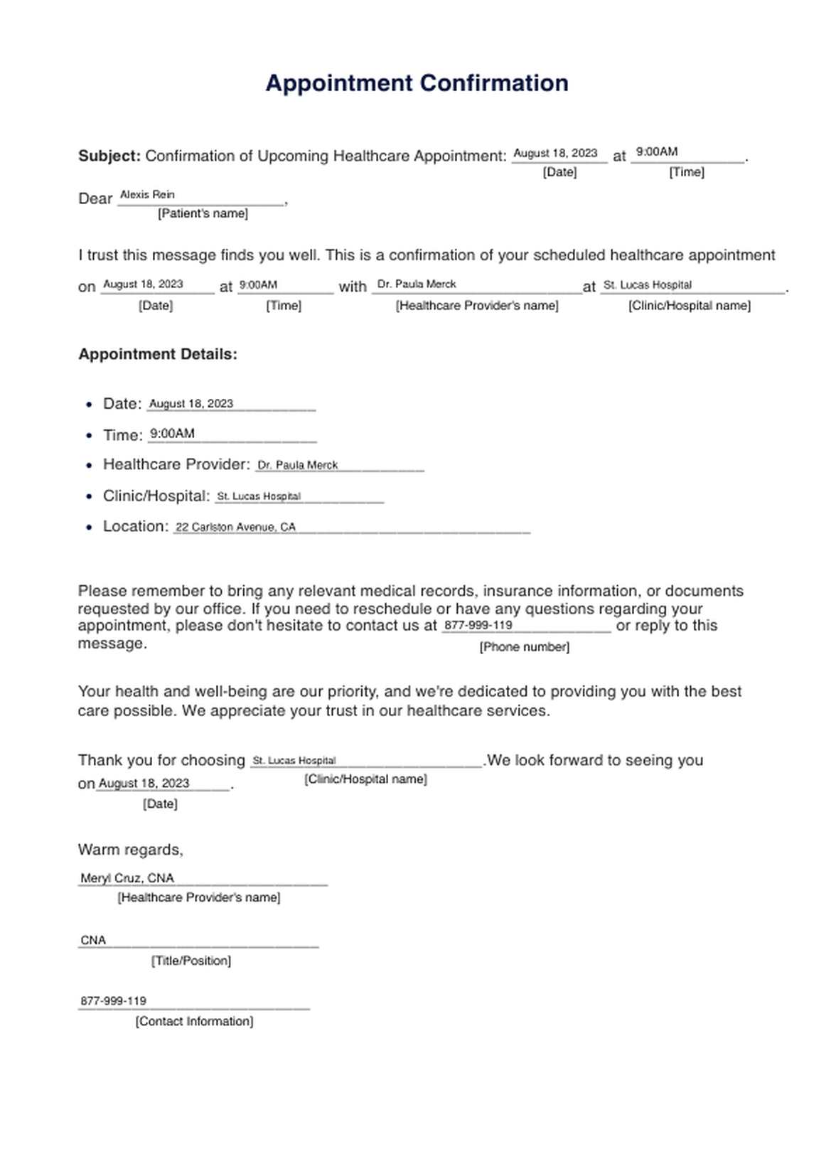 Get access to a free Appointment Confirmation Template and streamline your scheduling process. Download the template and example here.