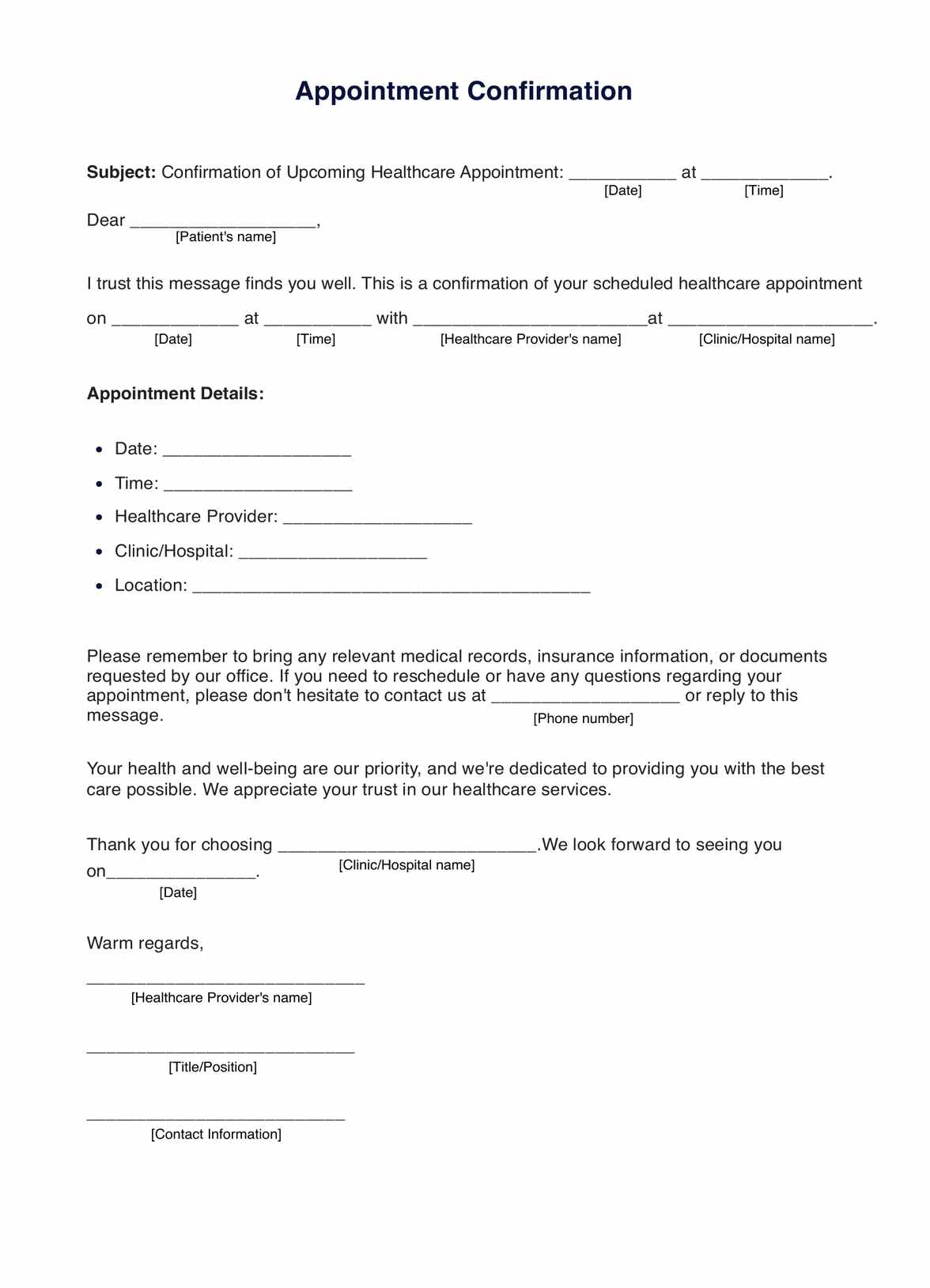 Healthcare providers can use Appointment Confirmation Templates to confirm any type of appointment, whether for routine check-ups, follow-up appointments, or special procedures or consultations.