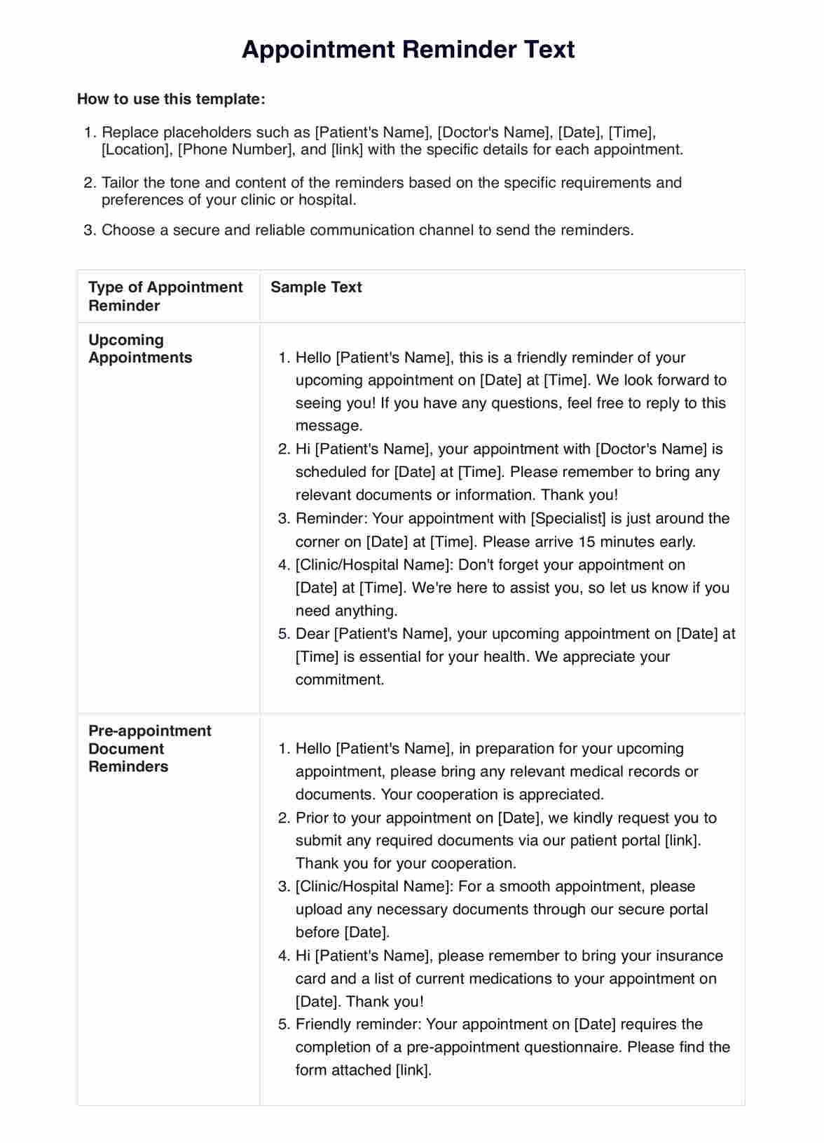 Streamline your schedule with our Appointment Reminder Text Template and example. Download our free PDF for effective and hassle-free appointment management.