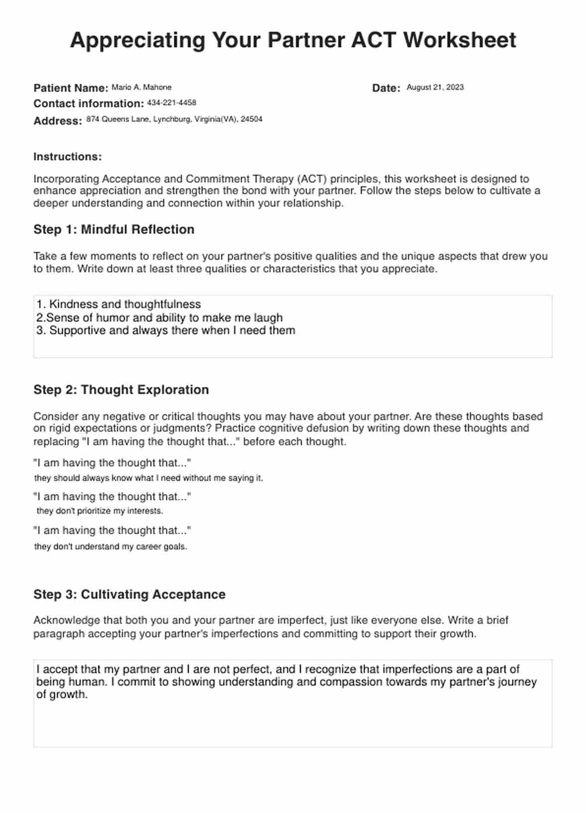 Enhance healthcare relationships with the Appreciating Your Partner ACT Worksheet. Strengthen bonds & communication. Download now for better care.