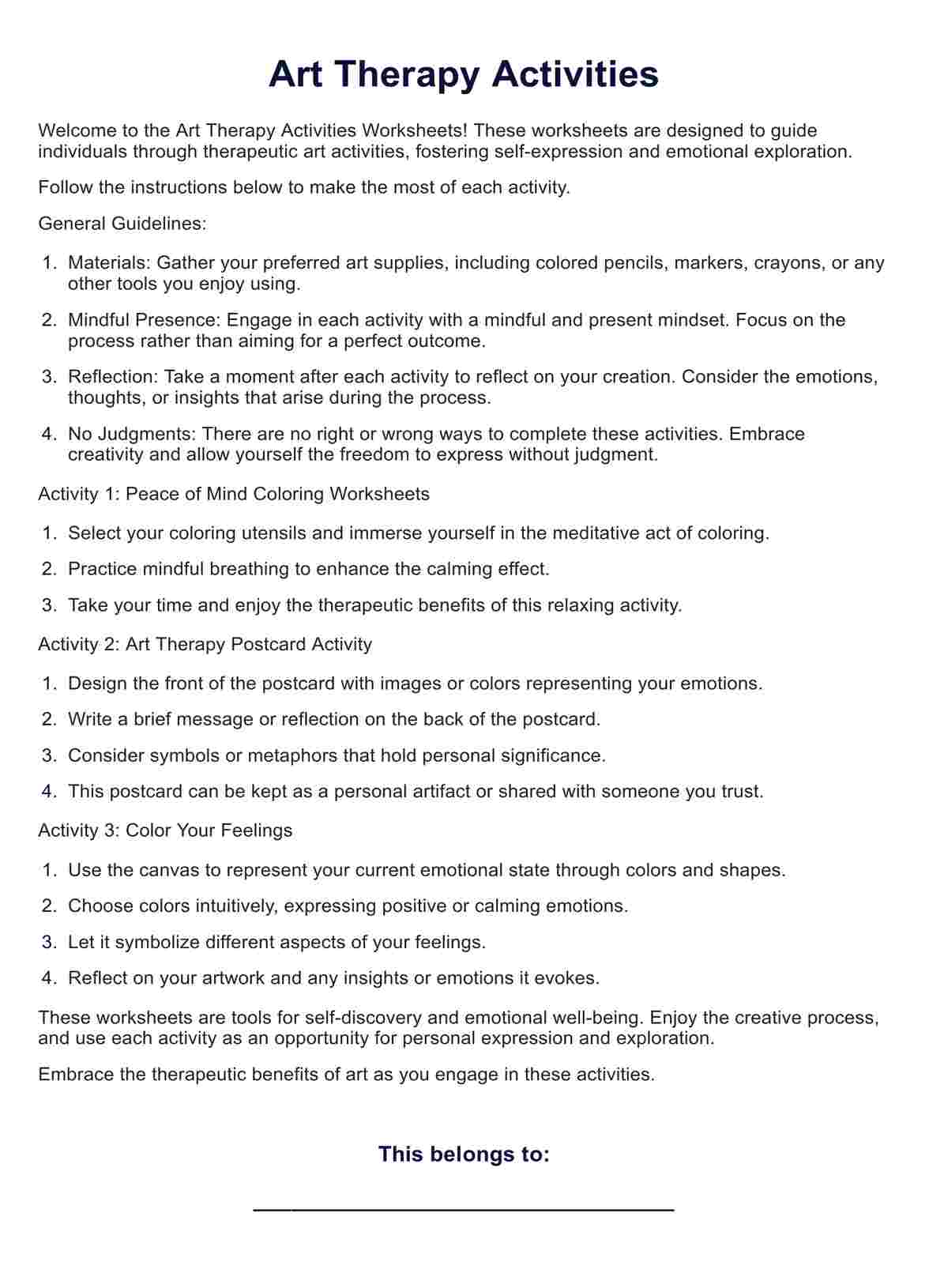 Foster self-esteem and self-awareness through art therapy activities. Explore the transformative power of creating art with our Art Therapy Activities PDF.