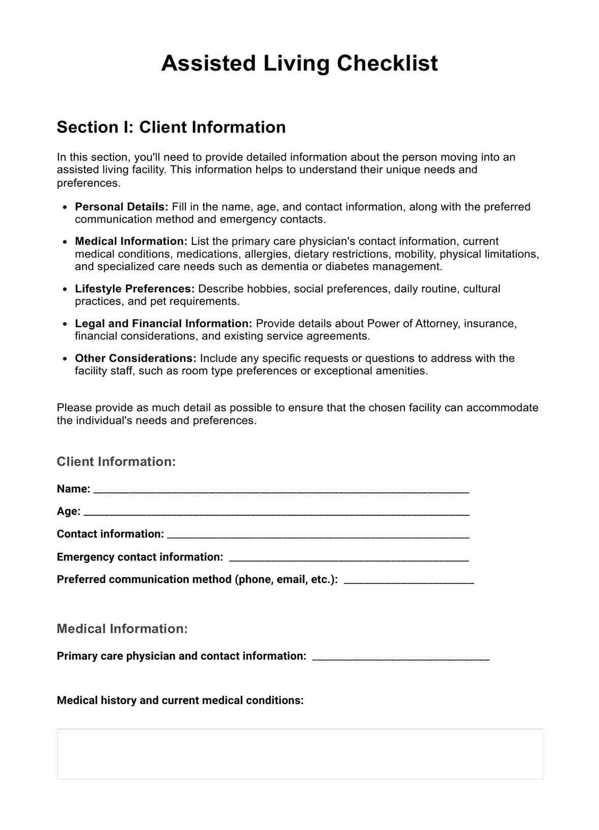 Explore the comprehensive Assisted Living Assessment tool on Carepatron, your go-to app for user-friendly, customizable, and secure assisted living care.