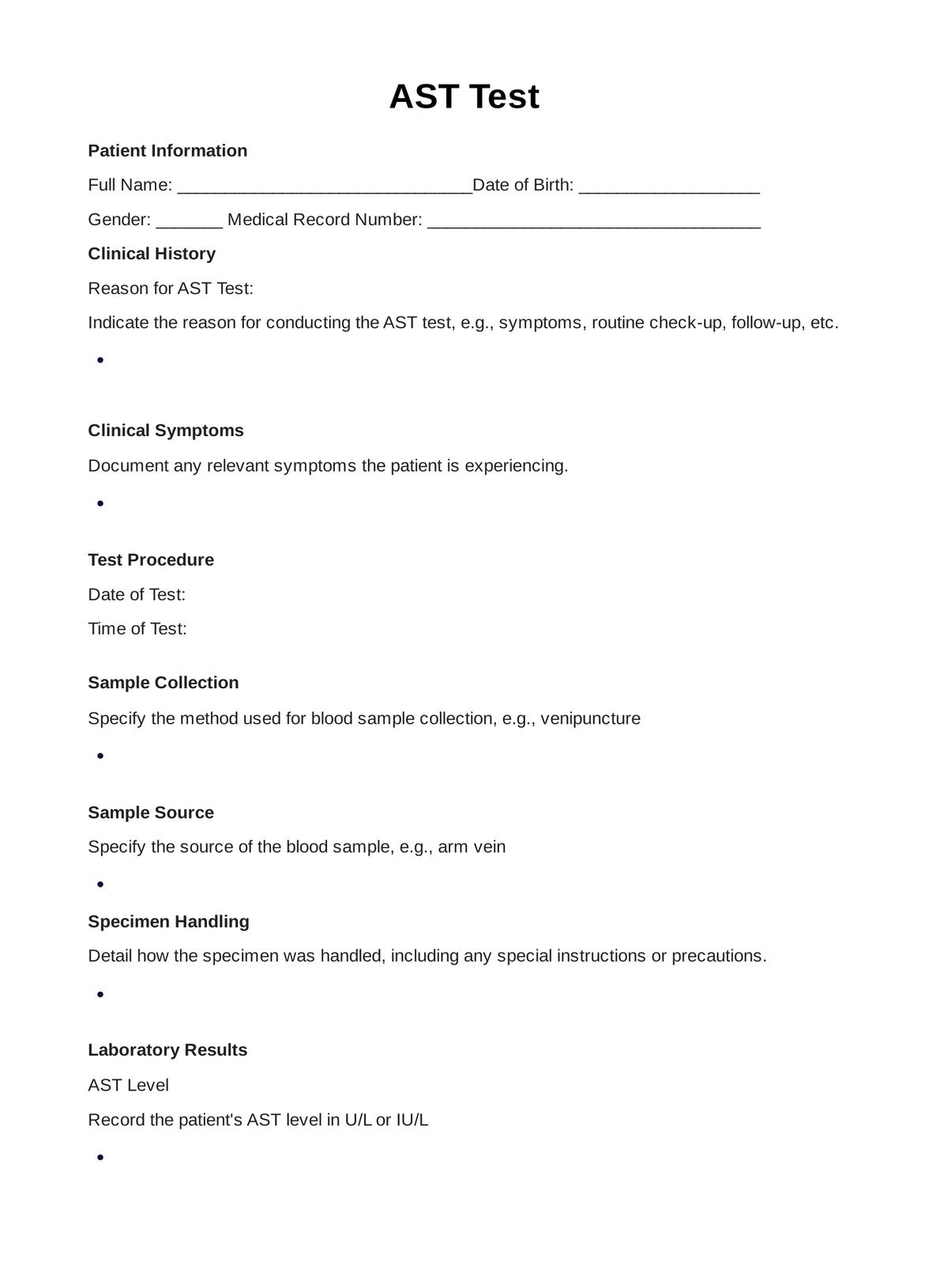 AST Tests involve collecting a blood sample, usually from a vein in the arm. The sample is then sent to a laboratory for analysis. The results help diagnose and monitor liver and heart conditions.