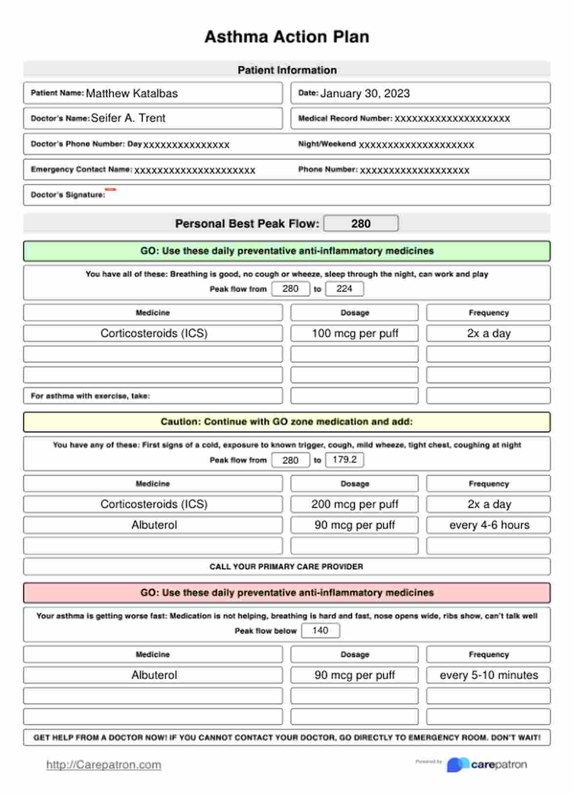 Asthmatics should always have a written/printed asthma action plan so they can assess the severity of their asthma and take the appropriate action! Here is an example of what one would normally look like!