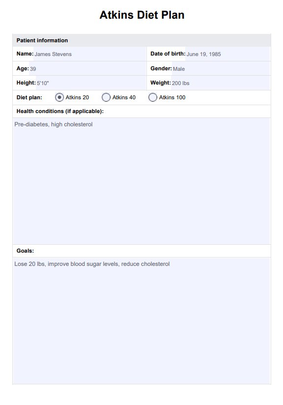 Discover the Carepatron's Atkins Diet Plan free PDF download. Use this low-carb approach to weight loss and improved overall health.