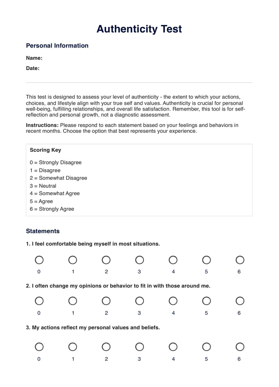 Discover how authentic you are with our Authenticity Test. Uncover your true self, live more authentically, and improve your life satisfaction. Try it now!