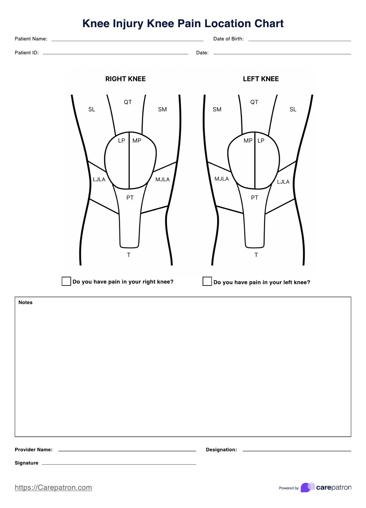 The Back Knee Pain Location Chart can help a person identify the source and severity of their knee pain. Additionally, it can be used to track changes in a patient’s condition over time—both with treatment and without—so that healthcare professionals can better understand the progression of the patient's disease.