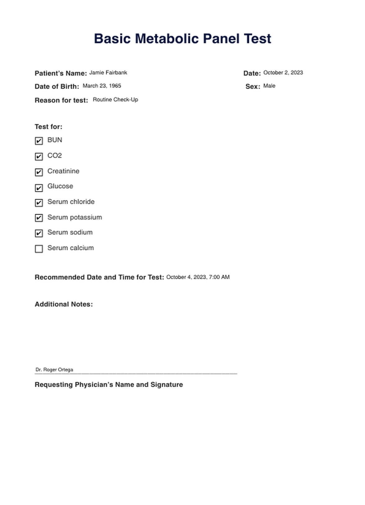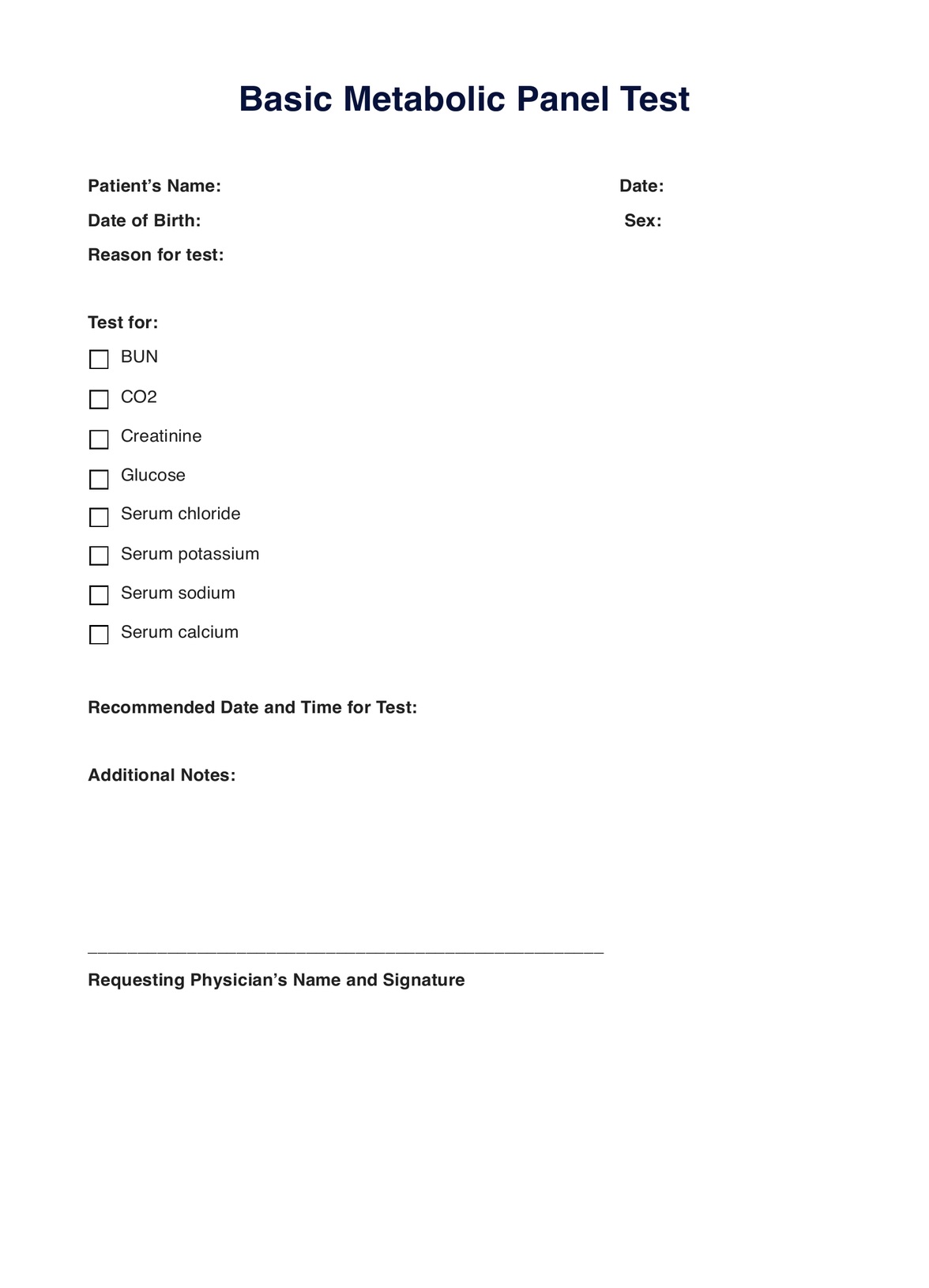 Basic Metabolic Panel Template