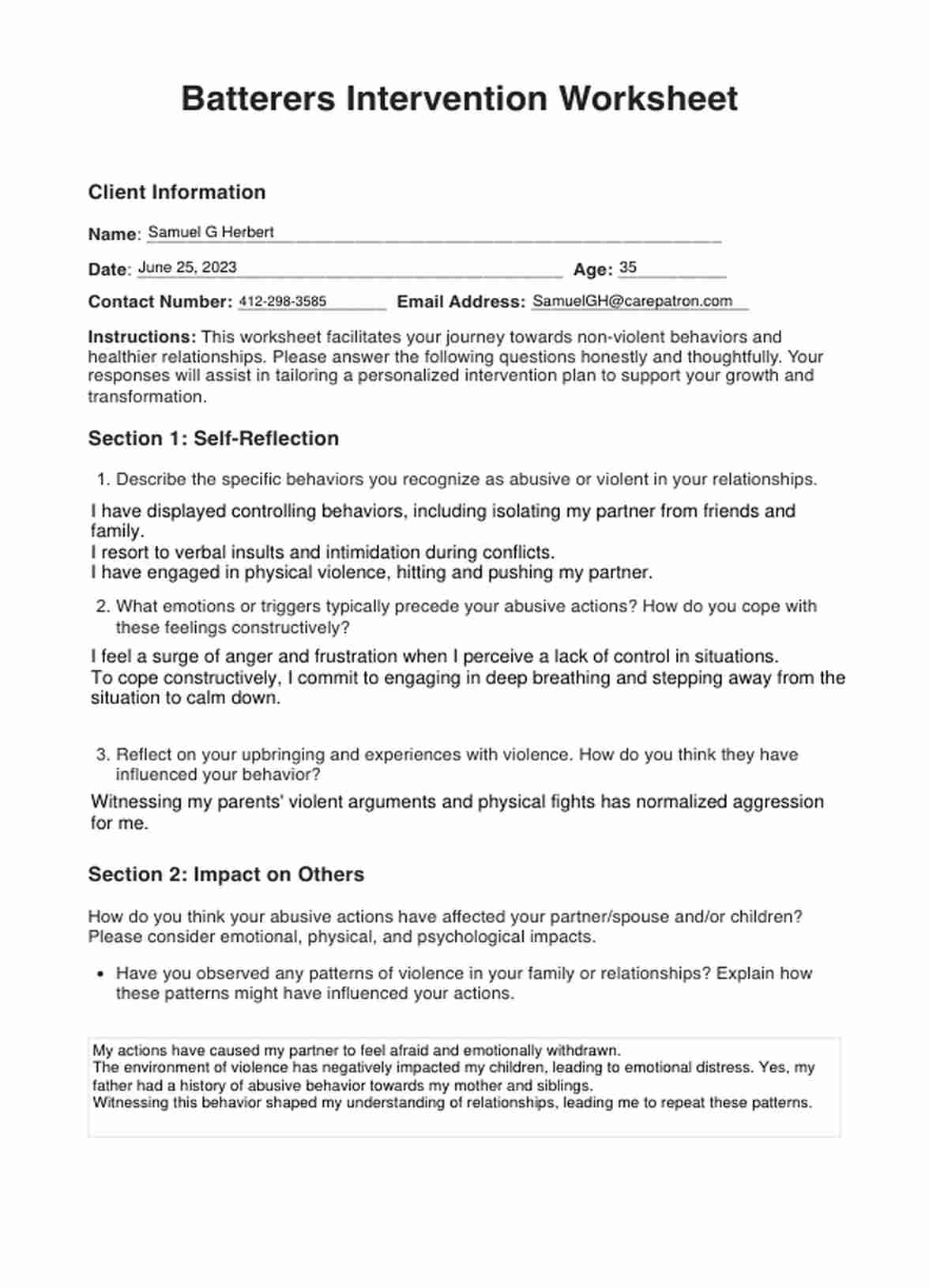 Transform behaviors with our Batterers Intervention Worksheet. Cultivate positive change, promote accountability, and foster healthy relationships.