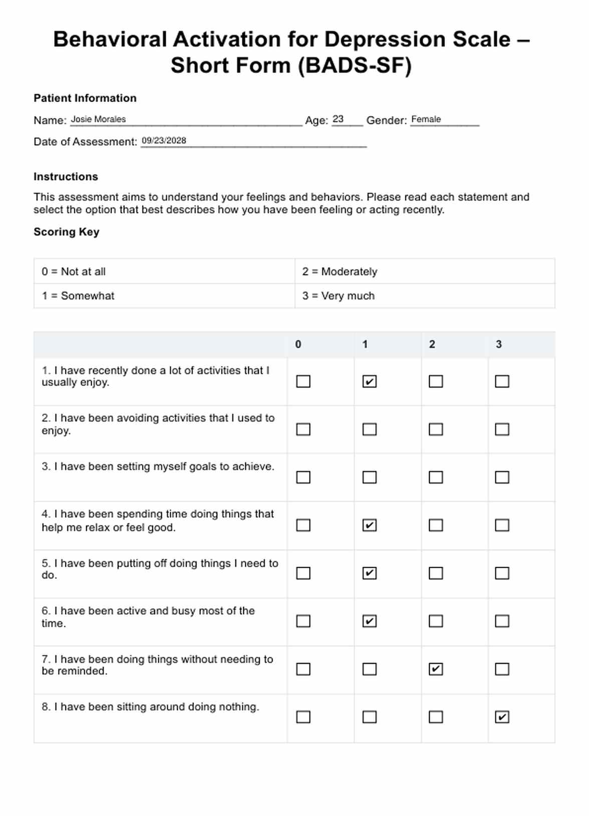 Behavioral Activation for Depression Scale – Short Form (BADS-SF) Template