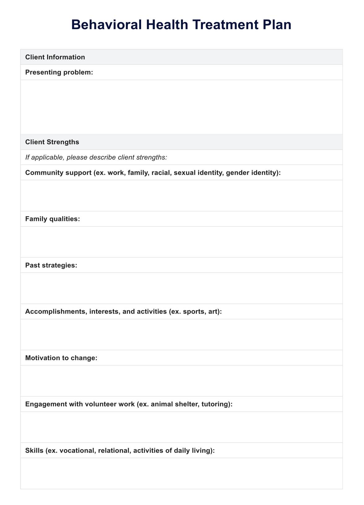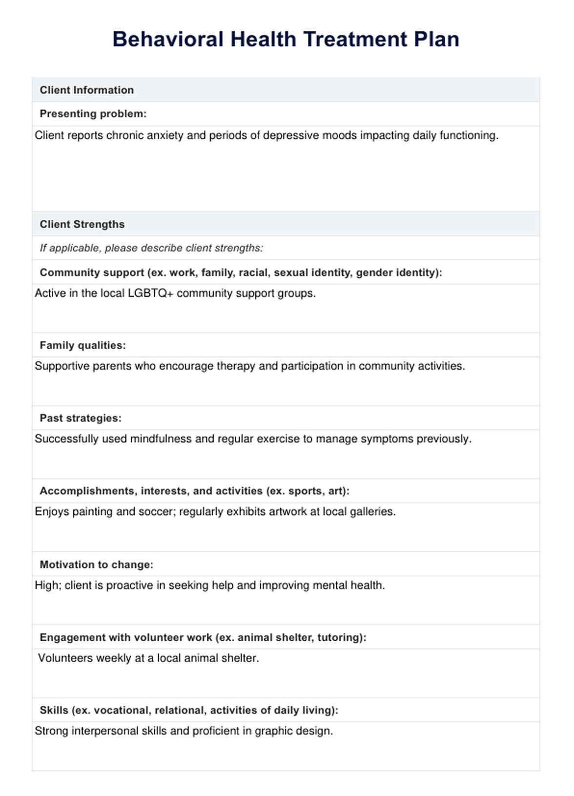 Behavioral Health Treatment Plan Template
