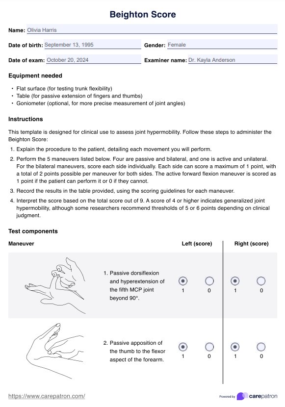 Assess joint hypermobility efficiently with our Beighton Score Template. Download the free PDF for accurate clinical evaluation, scoring, and interpretation.