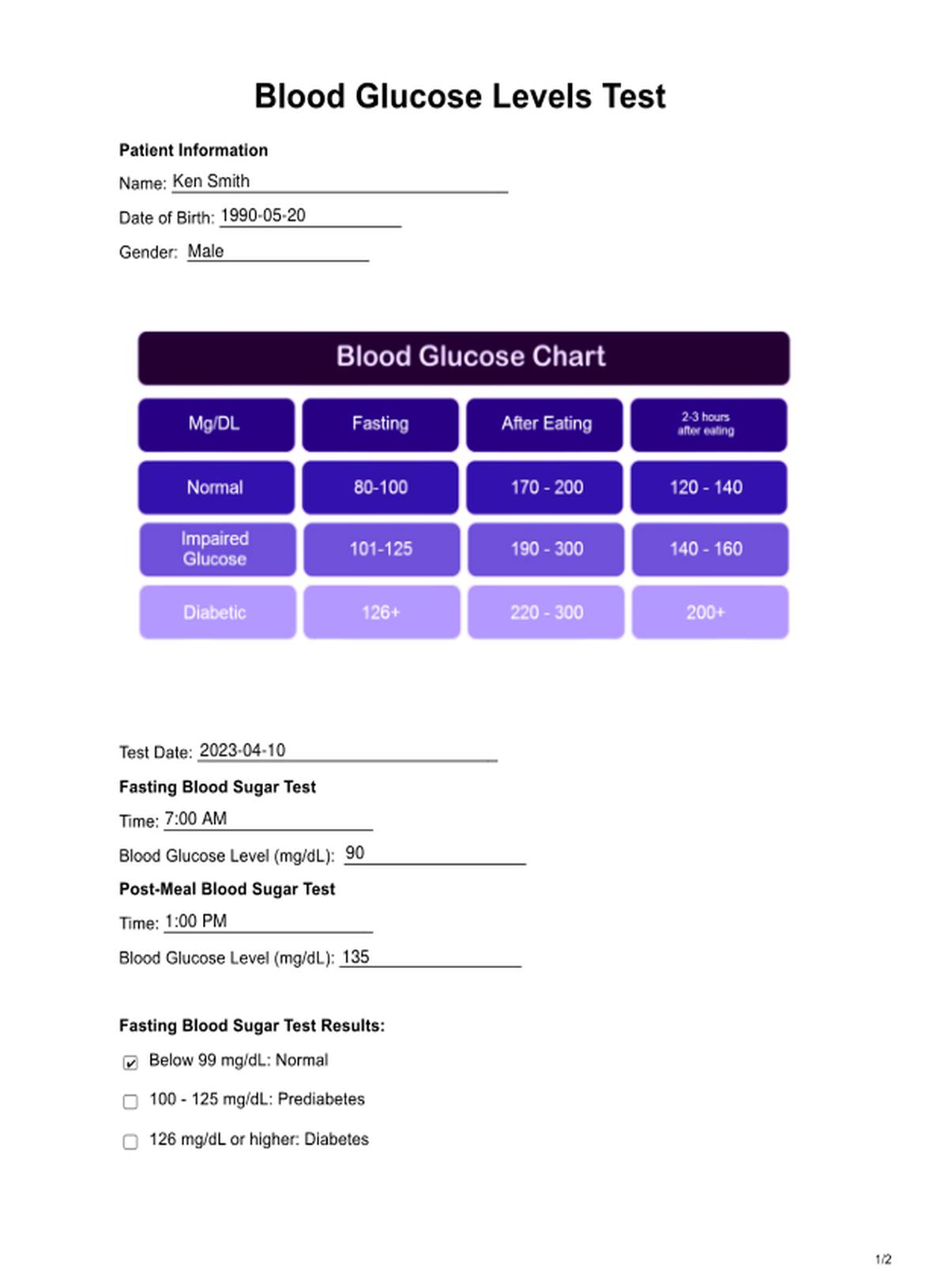 Blood Glucose Levels Template