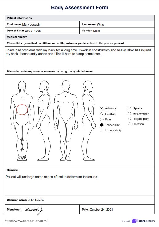 With a human body diagram, our Body Assessment Form will allow you to assess the symptoms and concerns of your patients for better clinical outcomes.