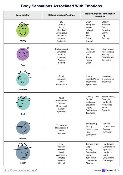 Enhance emotional awareness and improve coping skills with our Body Sensations Associated With Emotions PDF template.