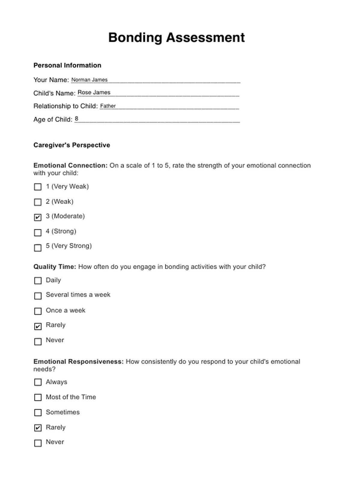 The application of bonding assessments varies based on the assessment type and purpose. Generally, they encompass self-report questionnaires, interviews, and observations. Questionnaires gauge caregivers' perceptions of the parent-child relationship, interviews explore interactions and emotions, and observations observe parent-child dynamics. Assessment outcomes identify potential relationship issues, aiding in crafting interventions for improvement.