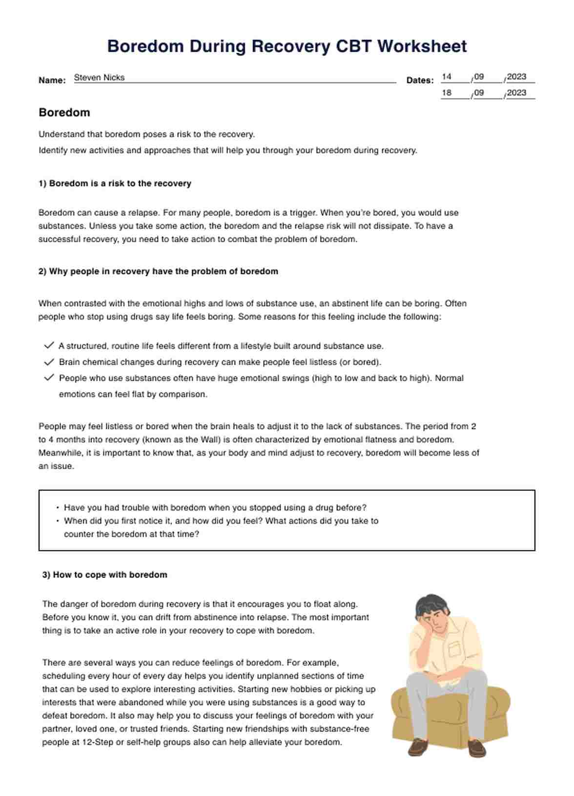 Boredom During Recovery CBT Worksheet