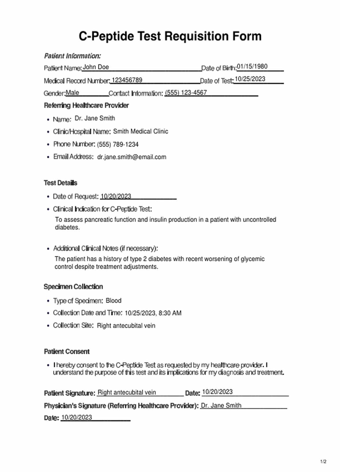 Healthcare providers, such as endocrinologists, diabetologists, and primary care physicians, typically request C-peptide tests.