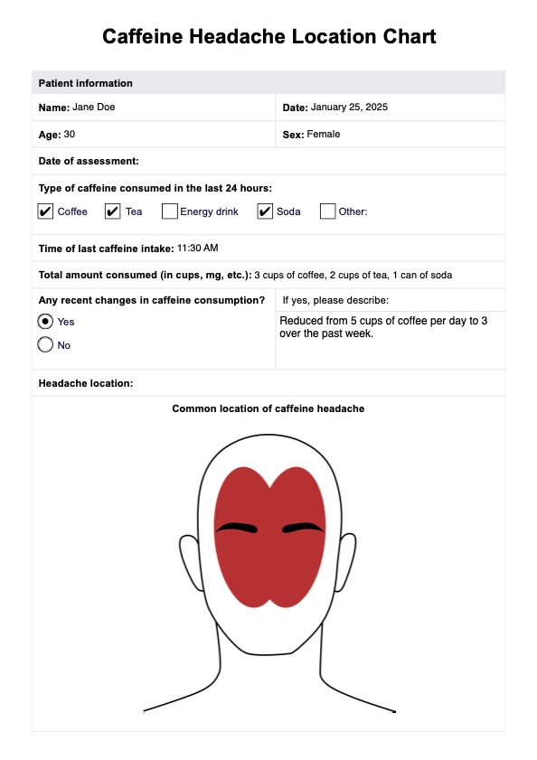 Caffeine Headache Location Chart Template