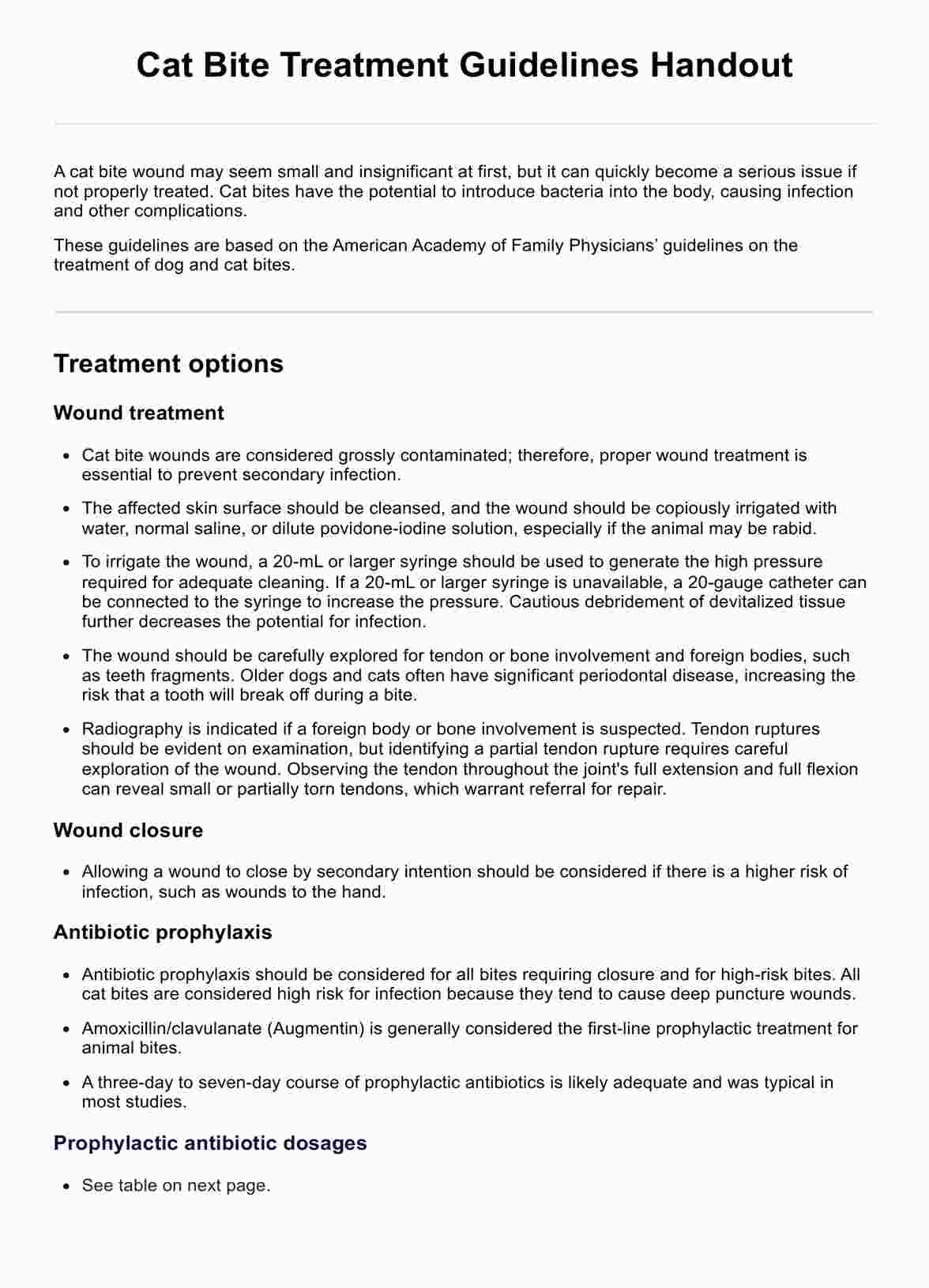 Cat Bite Treatment Guidelines Handout Template