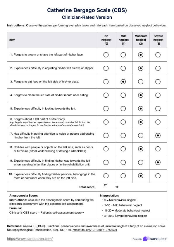 Learn the symptoms, causes, scoring, and benefits of the Catherine Bergego Scale (CBS) using our professional template to assess unilateral neglect.