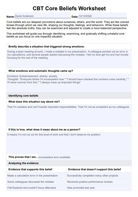 Download our CBT Core Beliefs Worksheet to help clients identify and challenge unhelpful core beliefs.
