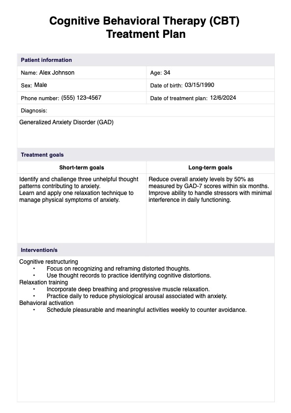 CBT Treatment Plans are used when addressing mental health conditions like anxiety, depression, and other behavioral challenges.