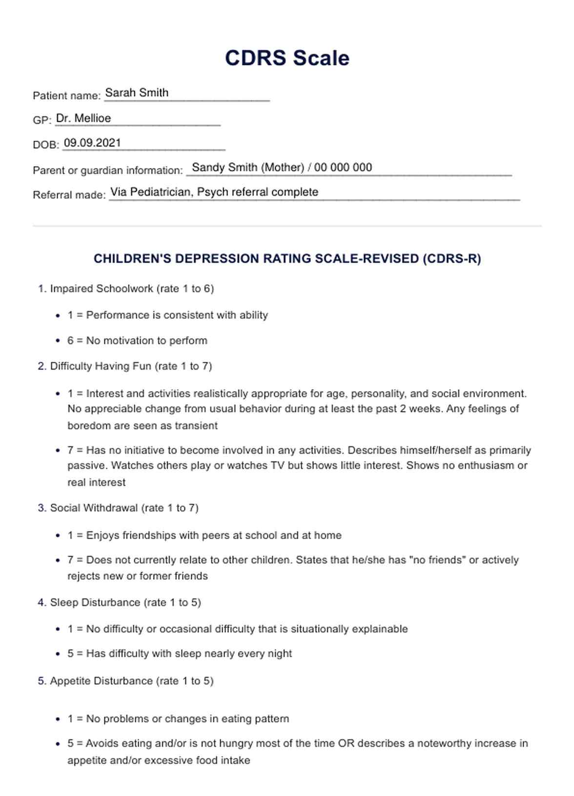 Clinicians use CDRS scores as a valuable tool to guide treatment decisions. For instance, a higher score may suggest the need for more intensive interventions, including therapy or, in some cases, medication. A decreasing score over time may indicate treatment effectiveness or remission, influencing decisions about the continuation or modification of treatment strategies.