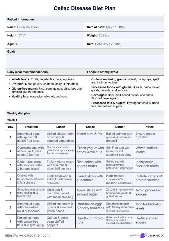 Healthcare professionals, including registered dietitians, gastroenterologists, and primary care providers, request this plan for patients diagnosed with celiac disease or gluten intolerance. It helps ensure patients follow a gluten-free diet while maintaining a balanced diet with proper nutrition.