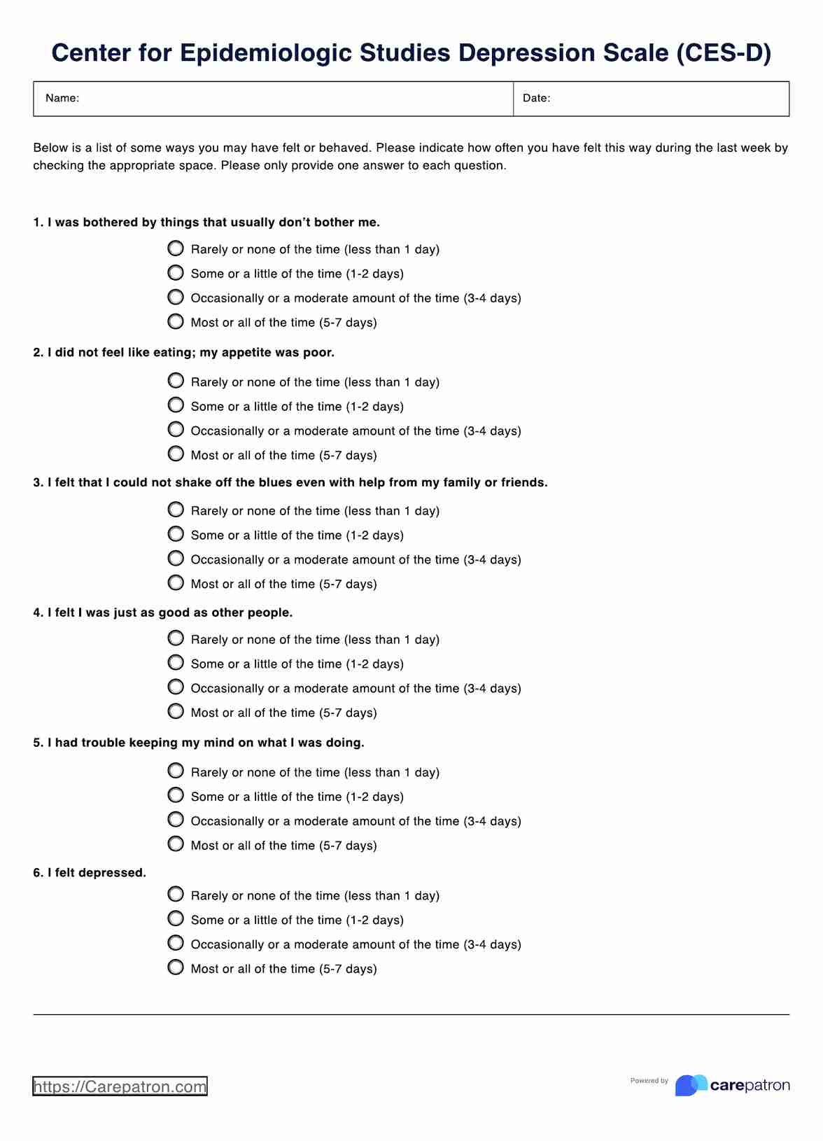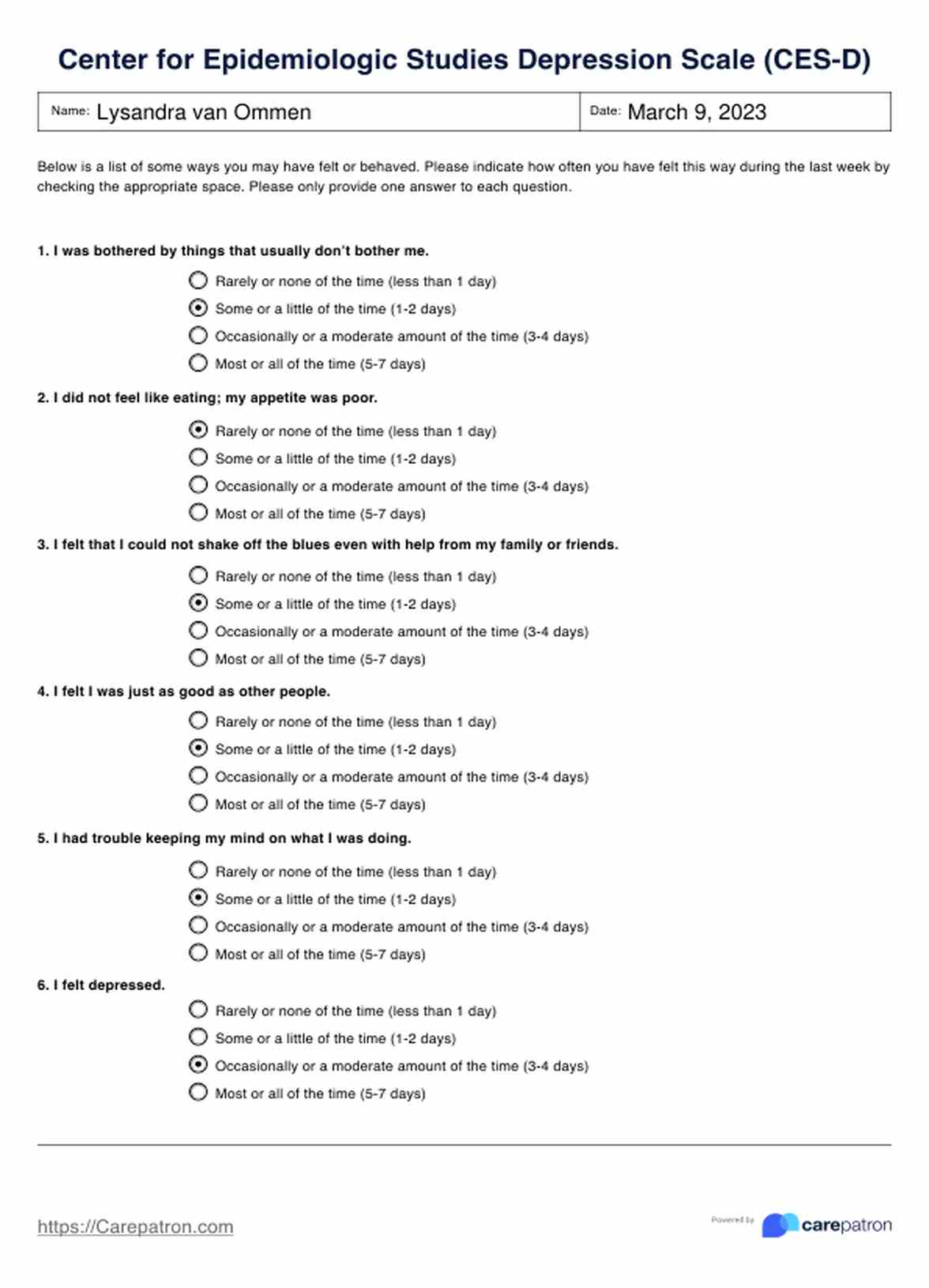 In the case of the Center for Epidemiologic Studies Depression Scale (CES-D), a score of 16 or higher means that your patient is depressed. The higher the score, the more severe their depression is likely to be.