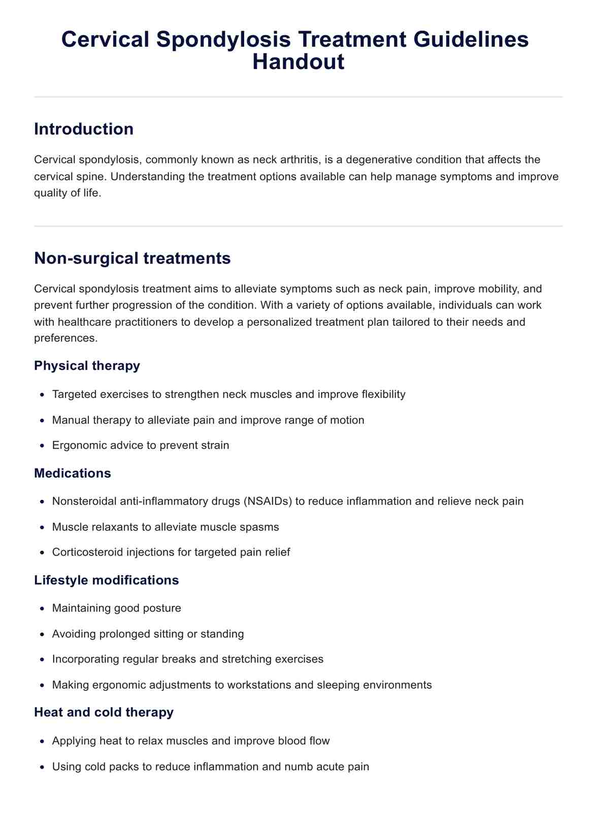Cervical Spondylosis Treatment Guidelines Handout Template