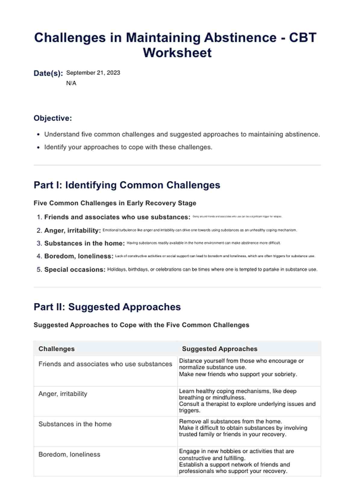 Challenges in Maintaining Abstinence CBT Worksheet Template