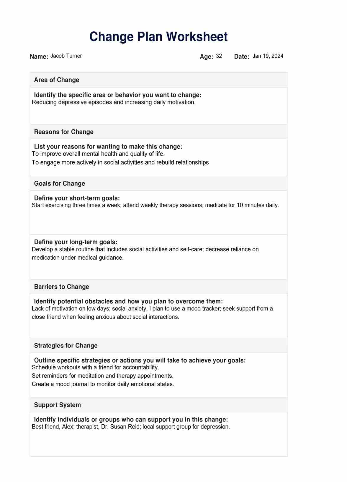 Explore our Change Plan Worksheet, a vital tool for addiction recovery and mental health, aiding clients in creating structured, personal change strategies.