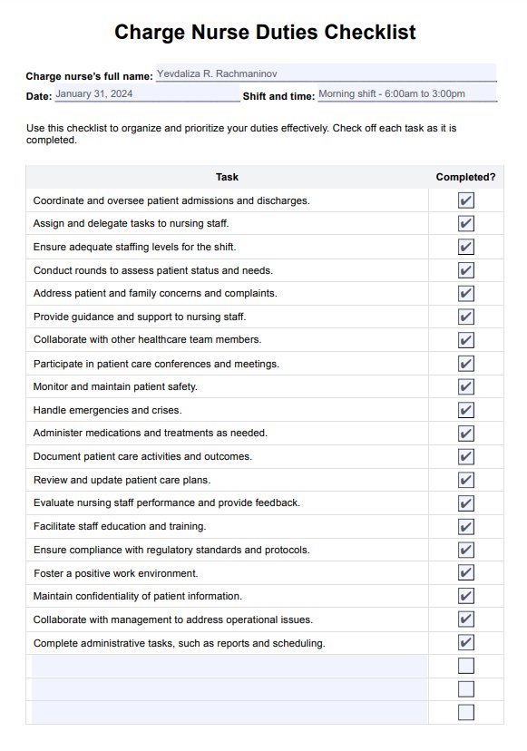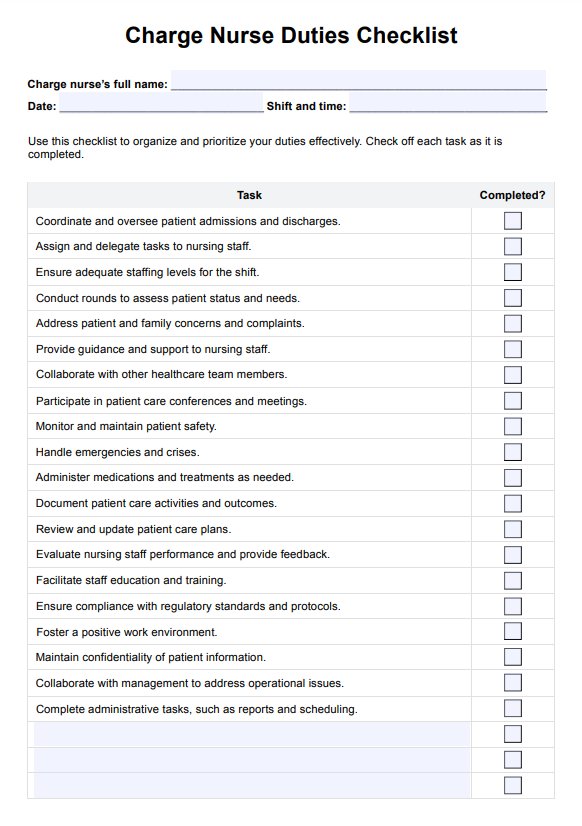 Take charge with our comprehensive Charge Nurse Duties Checklist. Free PDF download available!