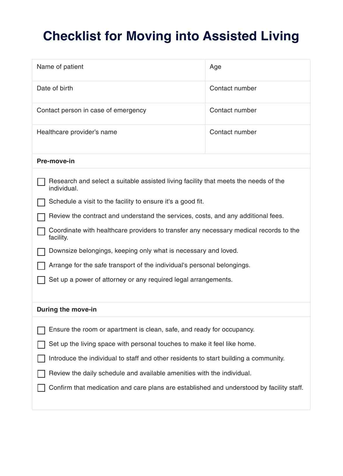 Download a free Checklist for Moving into Assisted Living for your patients. Make it easy for them to transition into assisted living with our comprehensive checklist.